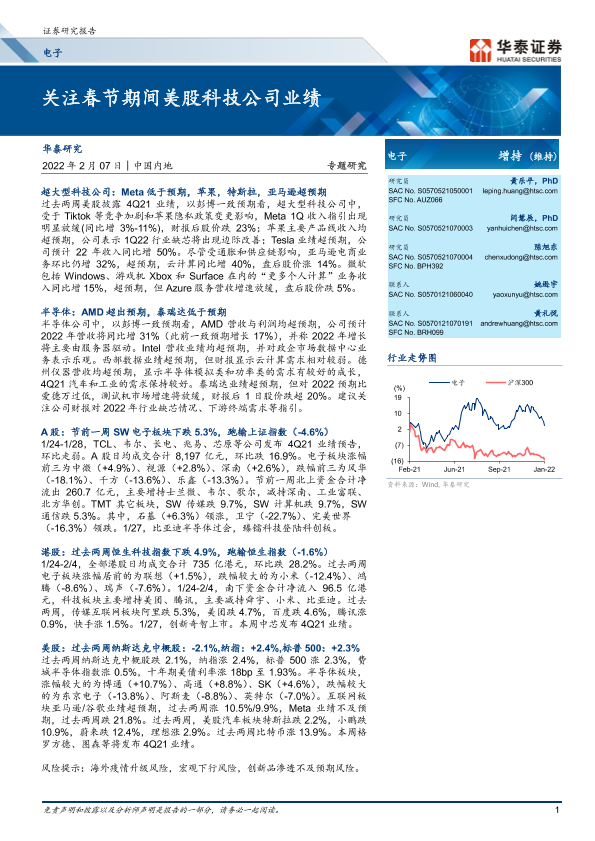 【华泰证券】【20220207】电子:关注春节期间美股科技公司业绩-17页