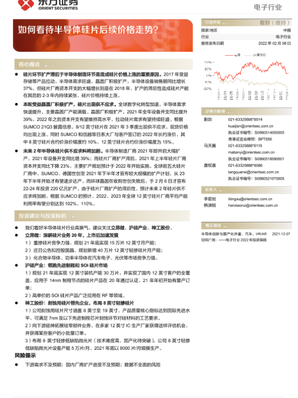 【东方证券】【20220208】电子行业:如何看待半导体硅片后续价格走势?-13页