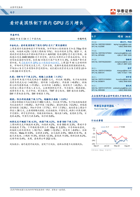 【华泰证券】【20220904】电子行业专题研究: 看好美国限制下国内GPU芯片增长-21页