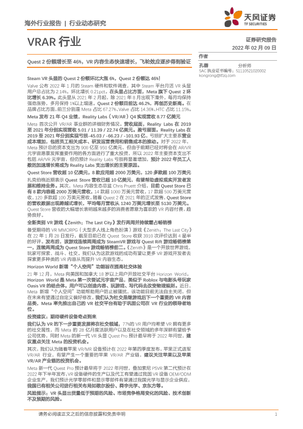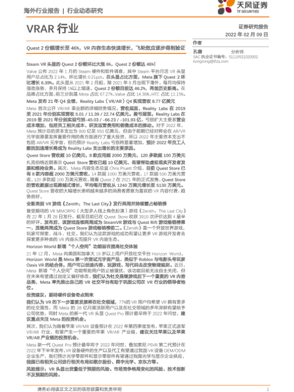 【天风证券】【20220209】VRAR行业:Quest2份额增长至46%,VR内容生态快速增长,飞轮效应逐步得到验证-4页