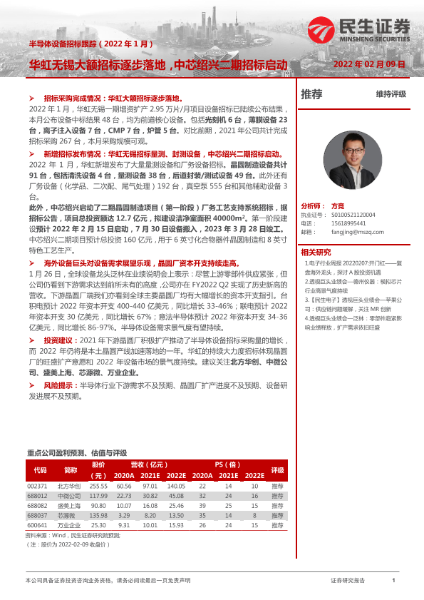 【民生证券】【20220209】半导体设备招标跟踪(2022年1月):华虹无锡大额招标逐步落地,中芯绍兴二期招标启动-7页
