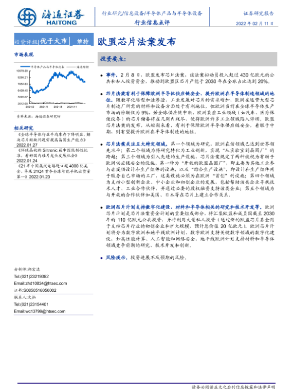 【海通证券】【20220211】半导体产品与半导体设备行业信息点评:欧盟芯片法案发布-2页