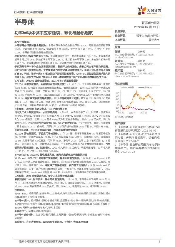 【天风证券】【20220213】20220213-天风证券-半导体行业研究周报:功率半导体供不应求延续,碳化硅扬帆起航-15页