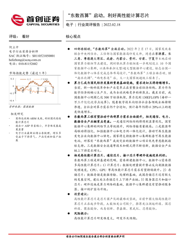 【首创证券】【20220218】20220218-首创证券-电子行业简评报告:“东数西算”启动,利好高性能计算芯片-4页
