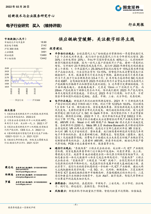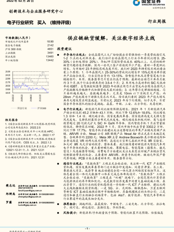 【国金证券】【20220220】电子行业研究:供应链缺货缓解,关注数字经济主线-18页