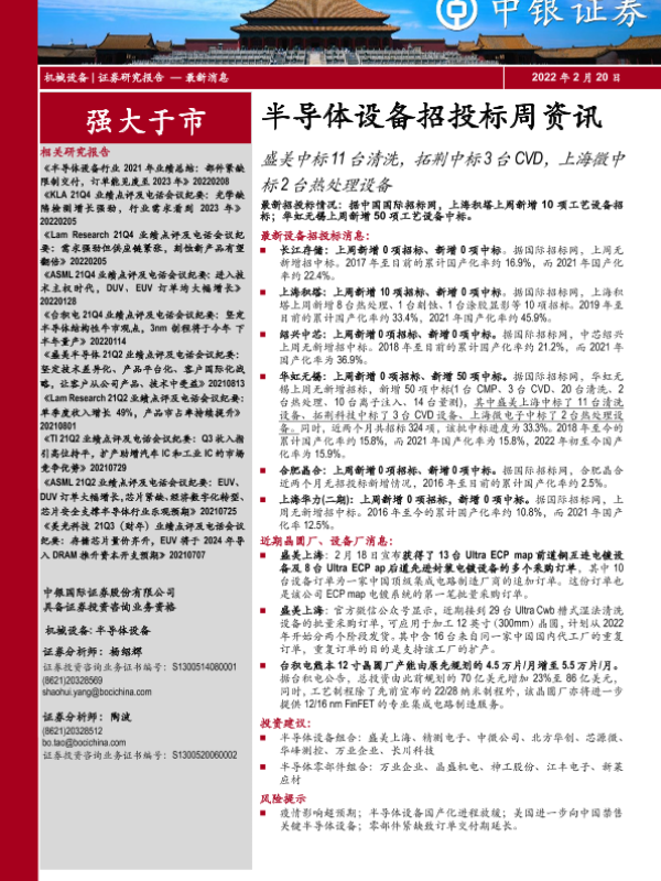 【中银证券】【20220220】20220220-中银证券-半导体设备招投标周资讯:盛美中标11台清洗,拓荆中标3台CVD,上海微中标2台热处理设备-3页