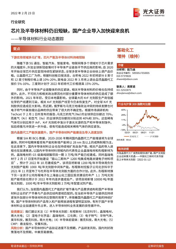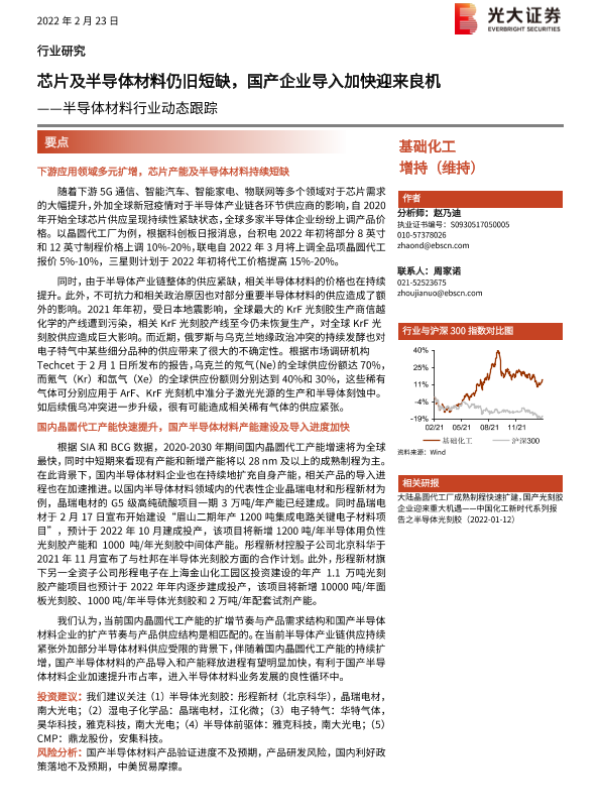 【光大证券】【20220223】20220223-光大证券-半导体材料行业动态跟踪:芯片及半导体材料仍旧短缺,国产企业导入加快迎来良机-2页