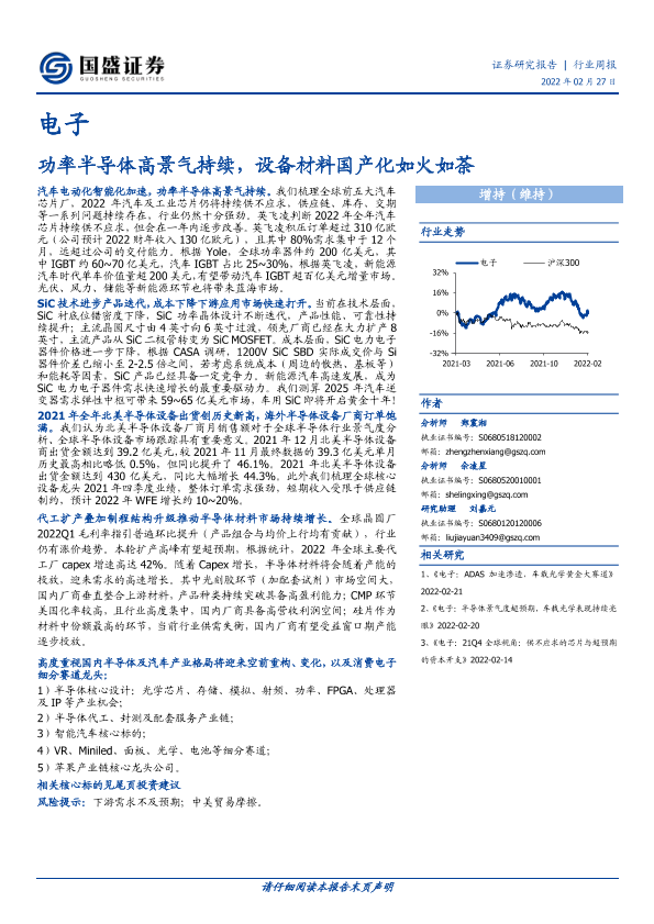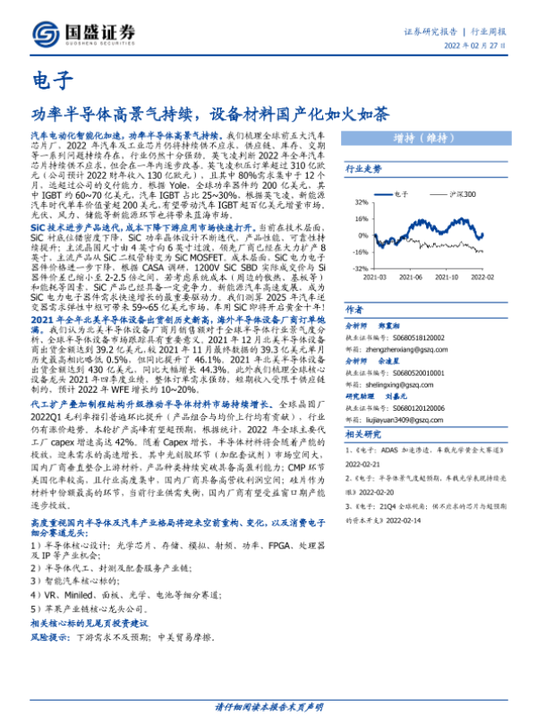 【国盛证券】【20220227】电子行业周报:功率半导体高景气持续,设备材料国产化如火如荼-32页