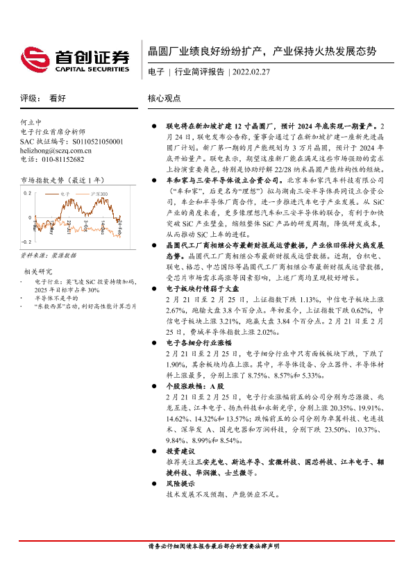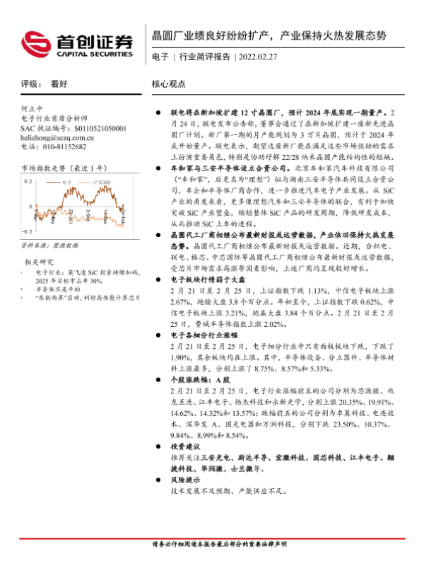 【首创证券】【20220227】电子行业简评报告:晶圆厂业绩良好纷纷扩产,产业保持火热发展态势-11页