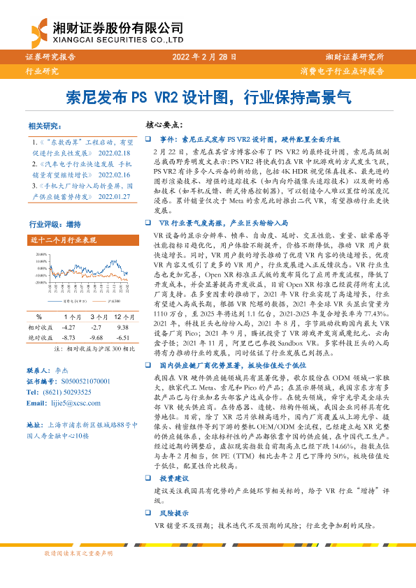 【湘财证券】【20220228】消费电子行业点评报告:索尼发布PSVR2设计图,行业保持高景气-4页