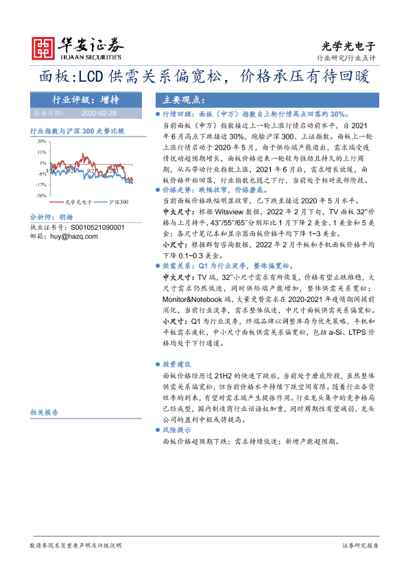 【华安证券】【20220228】面板 LCD供需关系偏宽松,价格承压有待回暖-3页