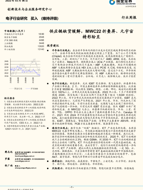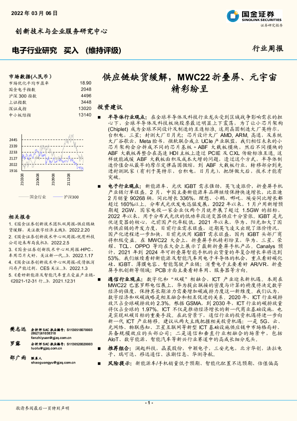 【国金证券】【20220306】电子行业周报:供应链缺货缓解,MWC22折叠屏、元宇宙精彩纷呈-18页
