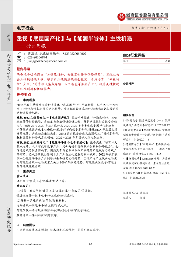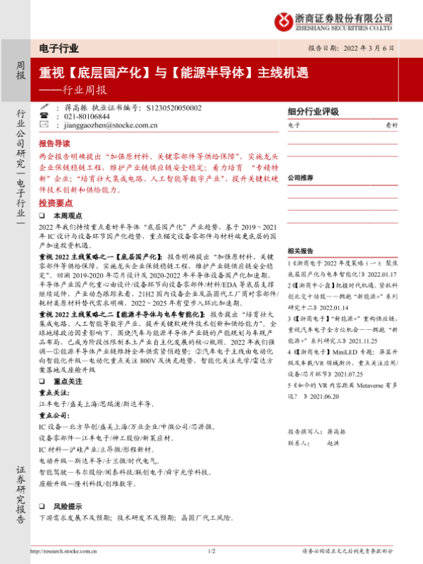 【浙商证券】【20220306】20220306-浙商证券-电子行业周报:重视【底层国产化】与【能源半导体】主线机遇-2页