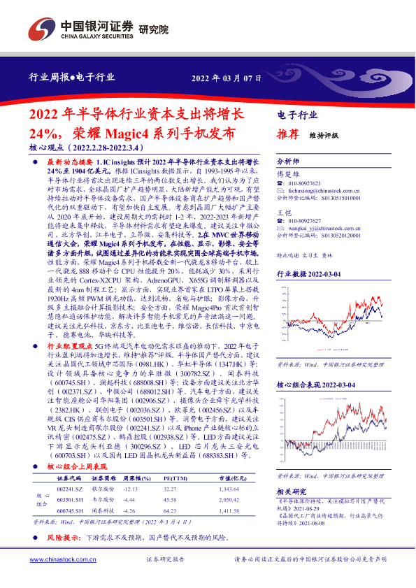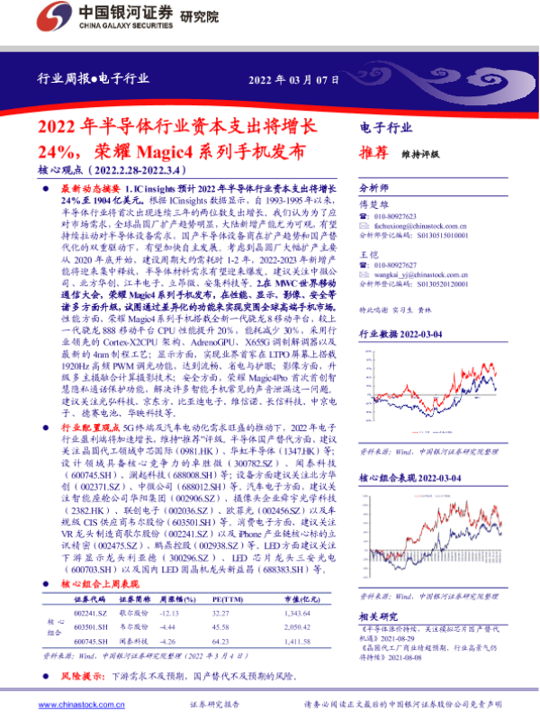 【银河证券】【20220307】2022年半导体行业资本支出将增长24%,荣耀Magic4系列手机发布-28页