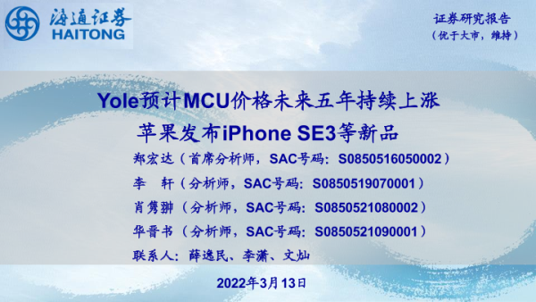 【海通证券】【20220313】Yole预计MCU价格未来五年持续上涨 苹果发布iPhone SE3等新品-10页