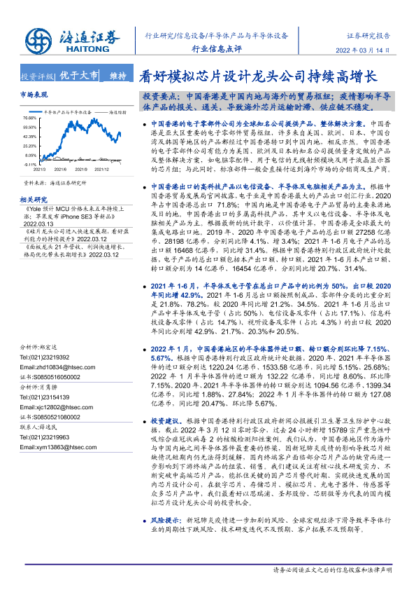 【海通证券】【20220314】20220314-海通证券-半导体产品与半导体设备行业信息点评:看好模拟芯片设计龙头公司持续高增长-2页