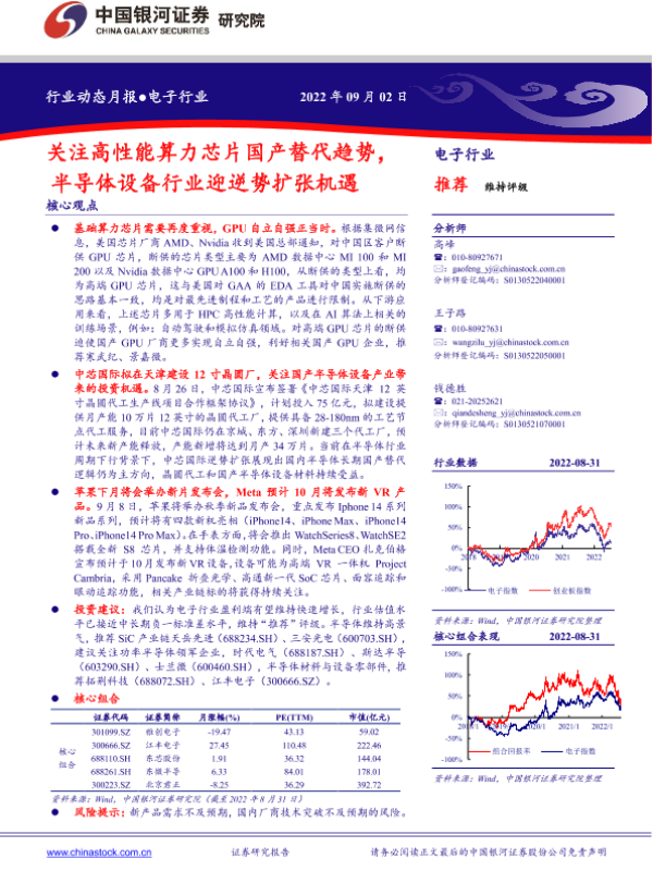 【银河证券】【20220902】电子行业:关注高性能算力芯片国产替代趋势,半导体设备行业迎逆势扩张机遇-30页