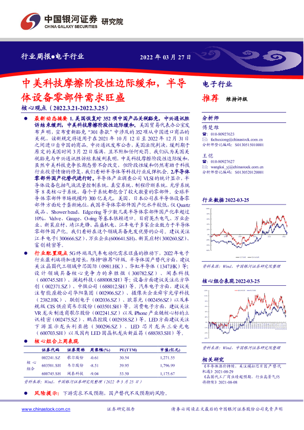 【银河证券】【20220327】20220327-中国银河-电子行业周报:中美科技摩擦阶段性边际缓和,半导体设备零部件需求旺盛-28页