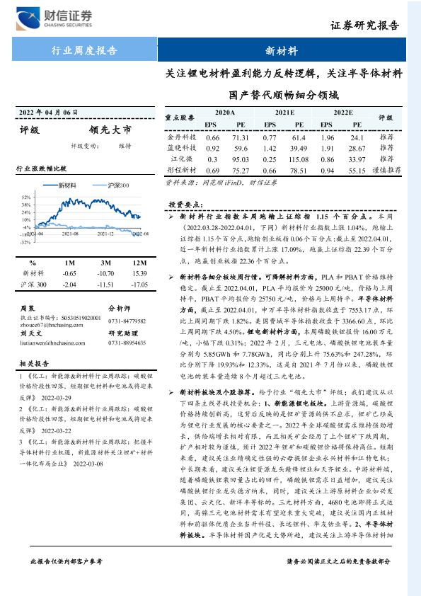 【财信证券】【20220406】新材料行业周度报告:关注锂电材料盈利能力反转逻辑,关注半导体材料国产替代顺畅细分领域-20页