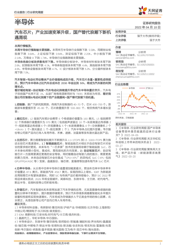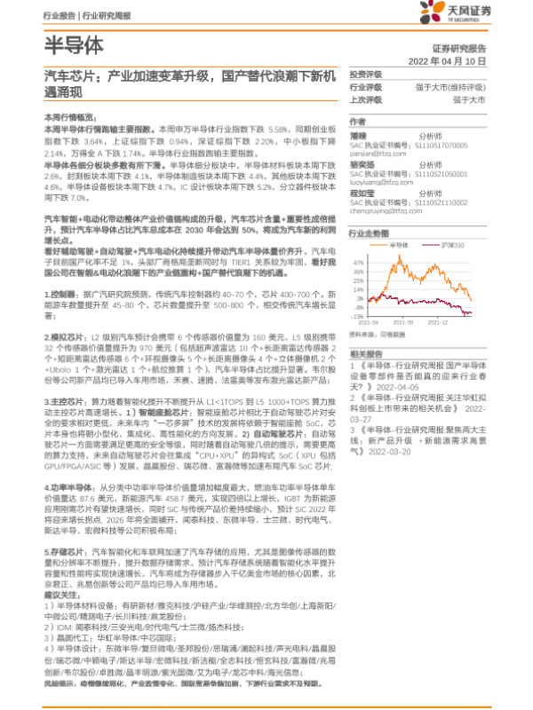 【天风证券】【20220410】20220410-天风证券-半导体行业研究周报:汽车芯片:产业加速变革升级,国产替代浪潮下新机遇涌现-30页