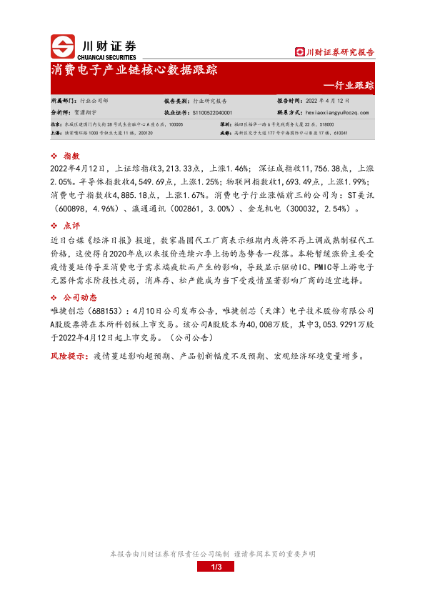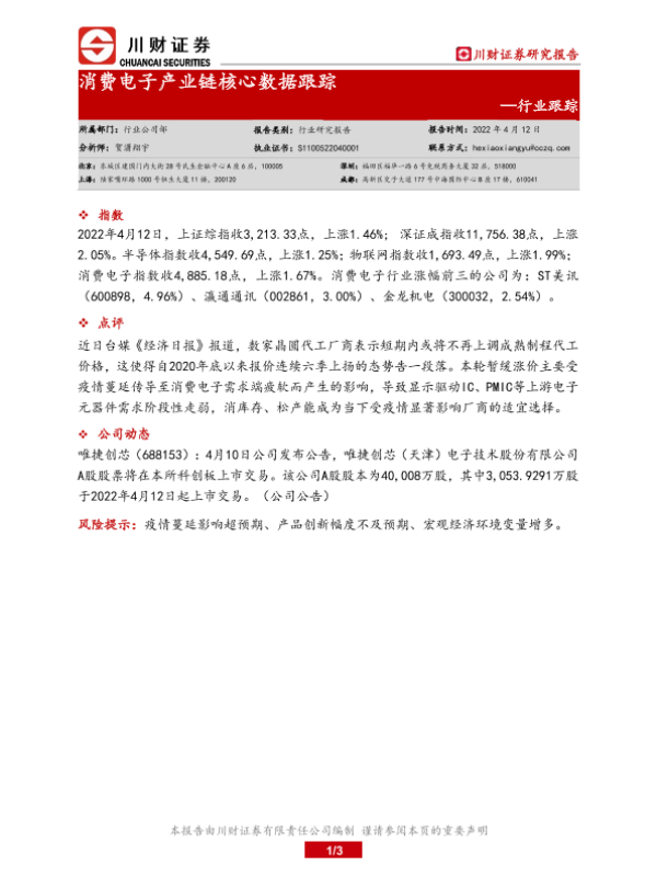 【川财证券】【20220412】消费电子产业链核心数据跟踪-3页