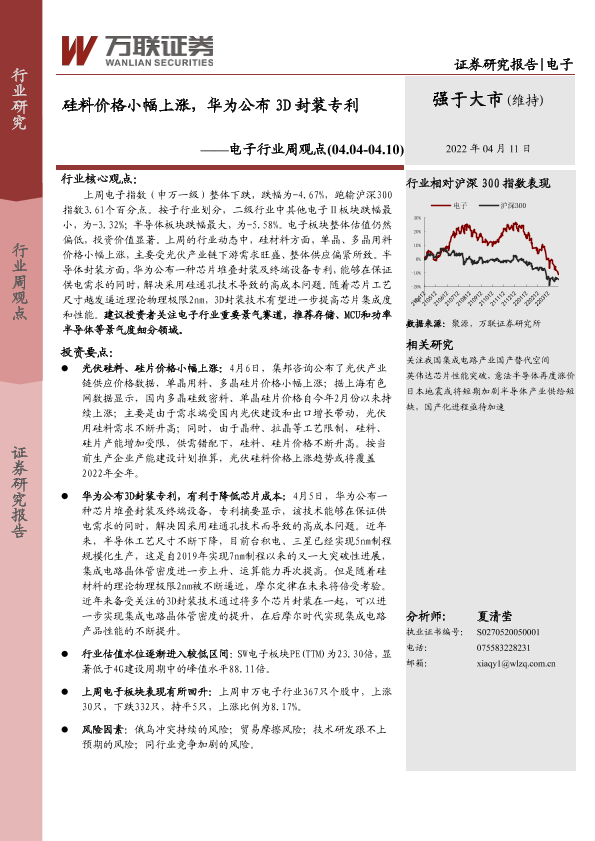 【万联证券】【20220411】硅料价格小幅上涨,华为公布3D封装专利-11页