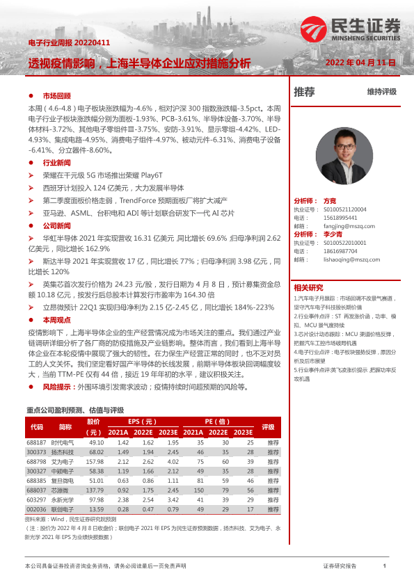 【民生证券】【20220411】20220411-民生证券-电子行业周报:透视疫情影响,上海半导体企业应对措施分析-17页
