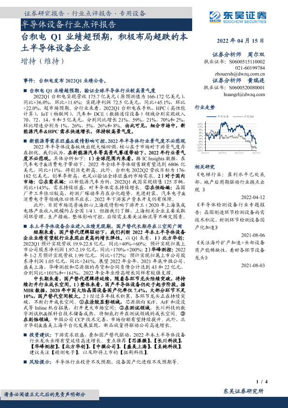 【东吴证券】【20220415】20220415-东吴证券-半导体设备行业点评报告:台积电Q1业绩超预期,积极布局超跌的本土半导体设备企业-4页