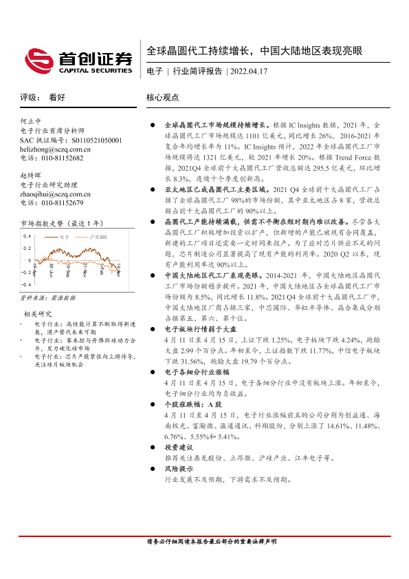 【首创证券】【20220417】20220417-首创证券-电子行业简评报告:全球晶圆代工持续增长,中国大陆地区表现亮眼-11页