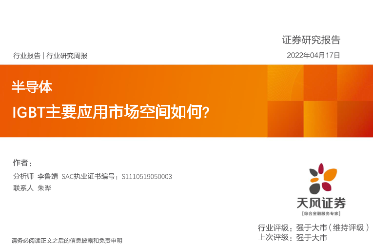 【天风证券】【20220417】20220417-天风证券-半导体行业研究周报:IGBT主要应用市场空间如何?-14页