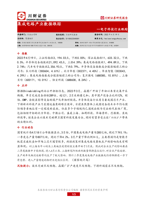 【川财证券】【20220419】电子科技行业跟踪:集成电路产业数据跟踪-3页