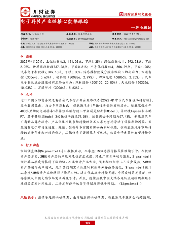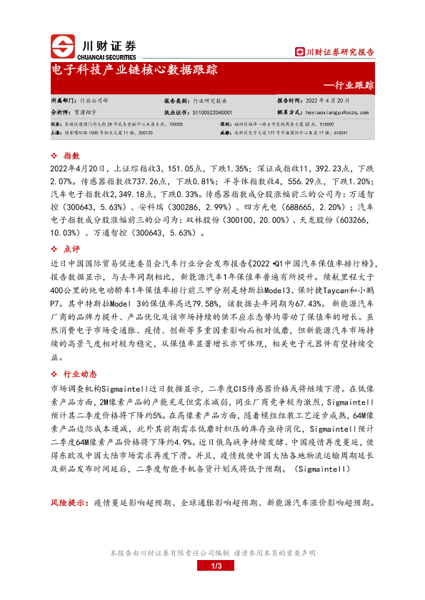 【川财证券】【20220420】电子科技产业链核心数据跟踪-3页