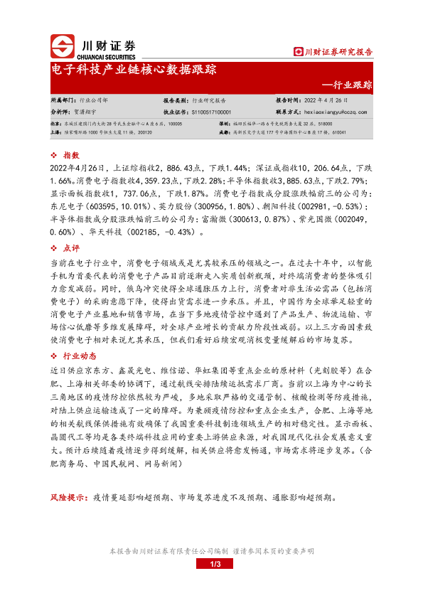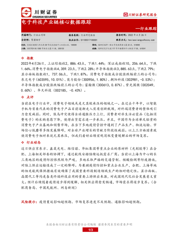 【川财证券】【20220426】电子科技产业链核心数据跟踪-3页