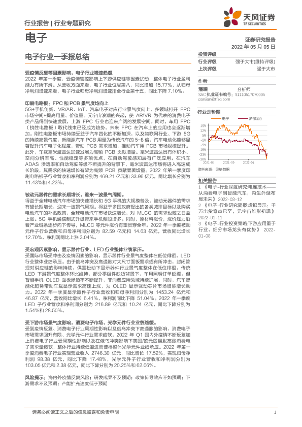 【天风证券】【20220505】20220505-天风证券-电子行业一季报总结-19页