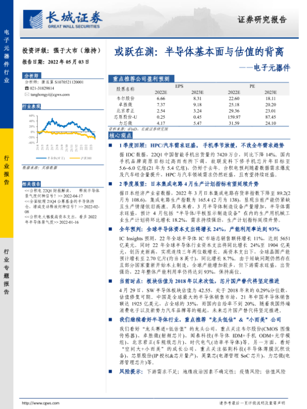 【长城证券】【20220503】或跃在渊:半导体基本面与估值的背离——电子元器件-10页