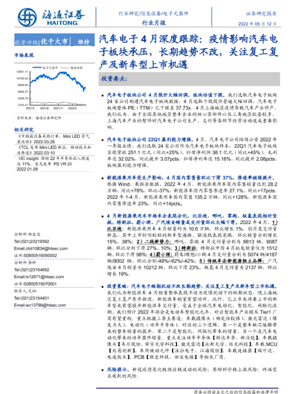 【海通证券】【20220512】汽车电子4月深度跟踪:疫情影响汽车电子板块承压,长期趋势不改,关注复工复产及新车型上市机遇-15页