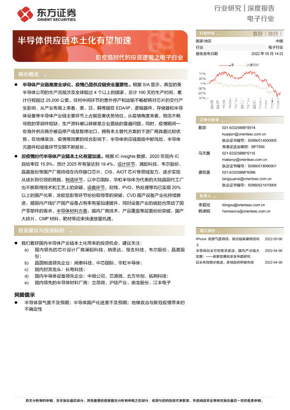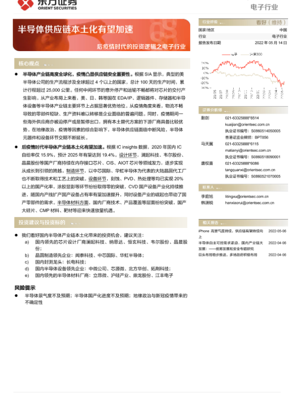 【东方证券】【20220514】后疫情时代的投资逻辑之电子行业:半导体供应链本土化有望加速-16页