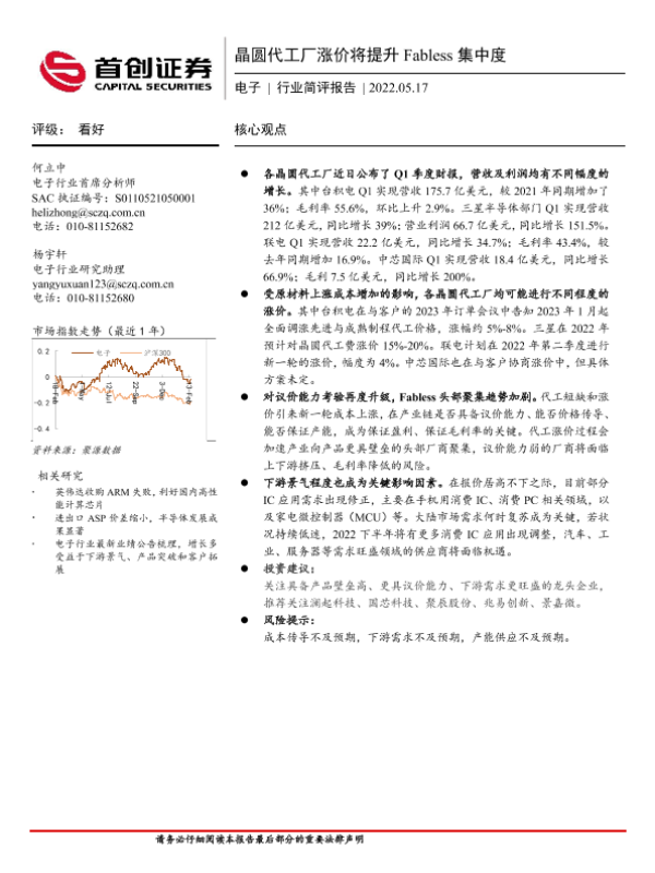 【首创证券】【20220517】20220517-首创证券-电子行业简评报告:晶圆代工厂涨价将提升Fabless集中度-2页