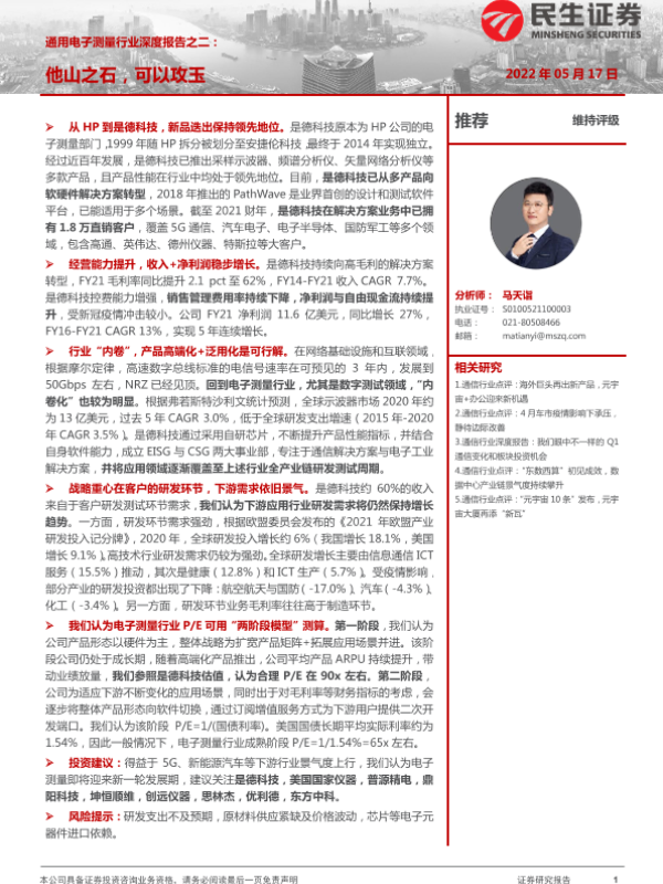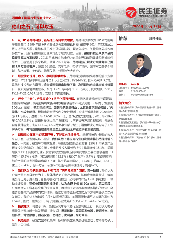 【民生证券】【20220517】通用电子测量行业深度报告之二:他山之石,可以攻玉-33页