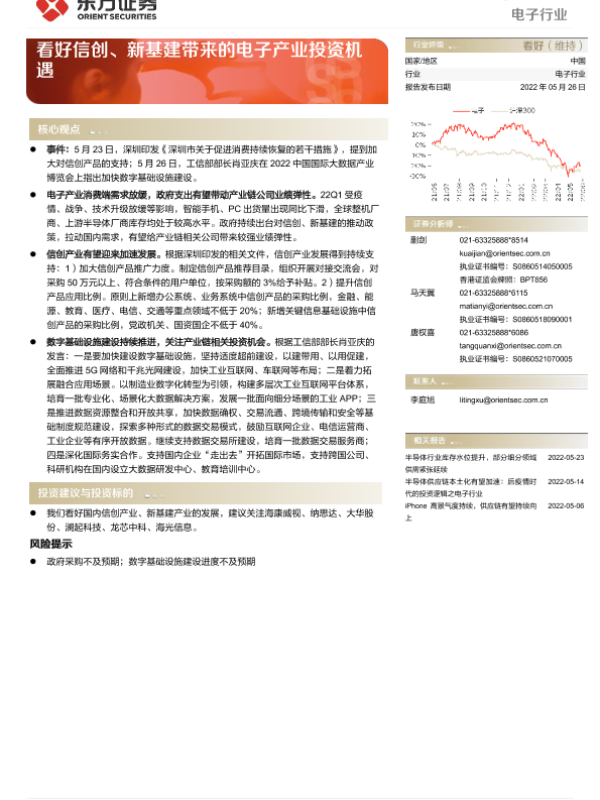 【东方证券】【20220526】电子行业:看好信创、新基建带来的电子产业投资机遇-5页