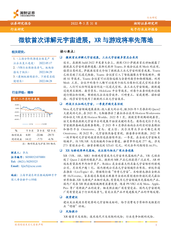 【湘财证券】【20220531】微软首次详解元宇宙进展,XR与游戏将率先落地-2页