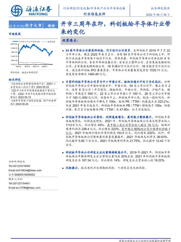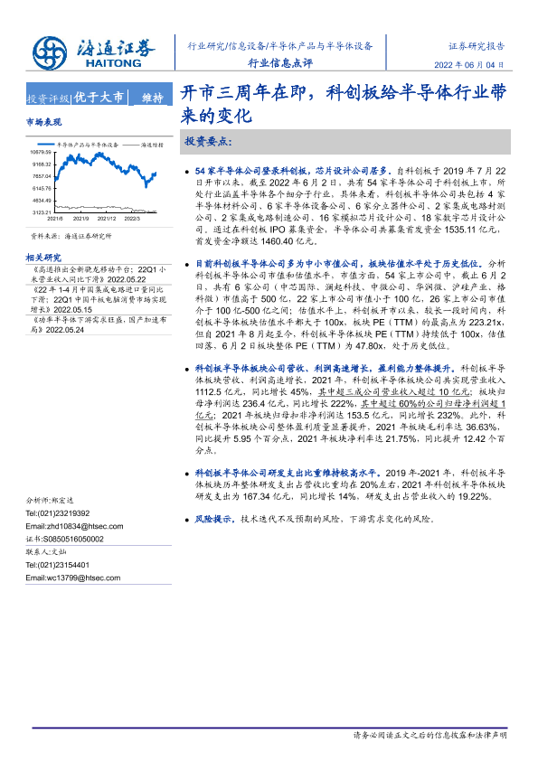 【海通证券】【20220604】20220604-海通证券-半导体产品与半导体设备行业信息点评:开市三周年在即,科创板给半导体行业带来的变化-2页