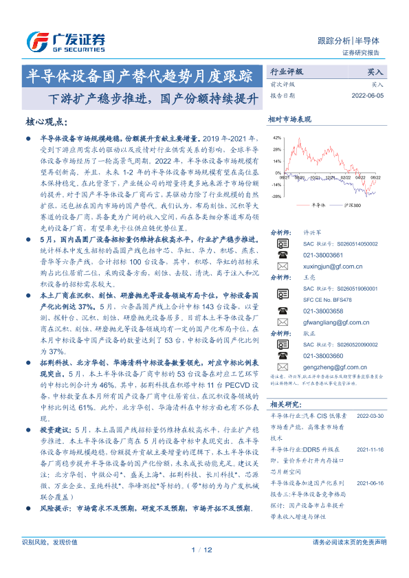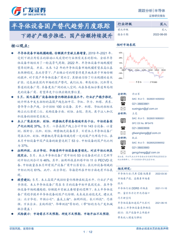 【广发证券】【20220605】半导体设备国产替代趋势月度跟踪:下游扩产稳步推进,国产份额持续提升-12页