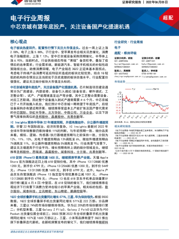 【国信证券】【20220605】20220605-国信证券-电子行业周报:中芯京城有望年底投产,关注设备国产化提速机遇-13页