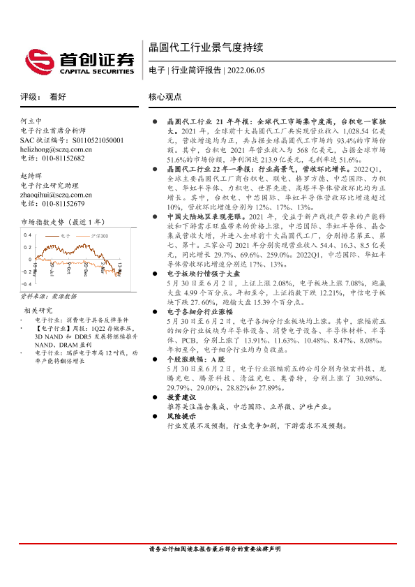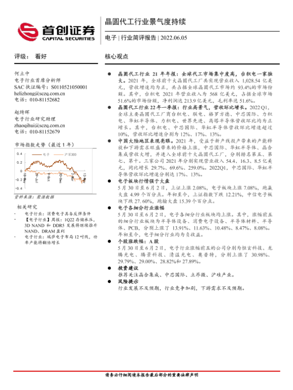 【首创证券】【20220605】20220605-首创证券-电子行业简评报告:晶圆代工行业景气度持续-12页