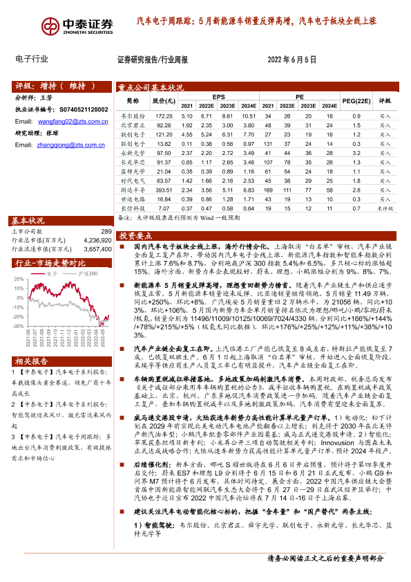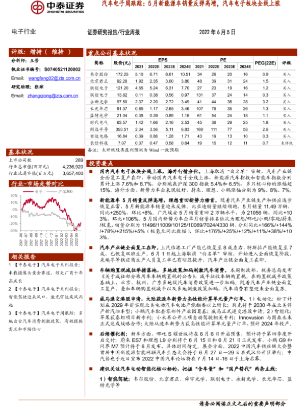 【中泰证券】【20220605】汽车电子周跟踪:5月新能源车销量反弹高增,汽车电子板块全线上涨-21页