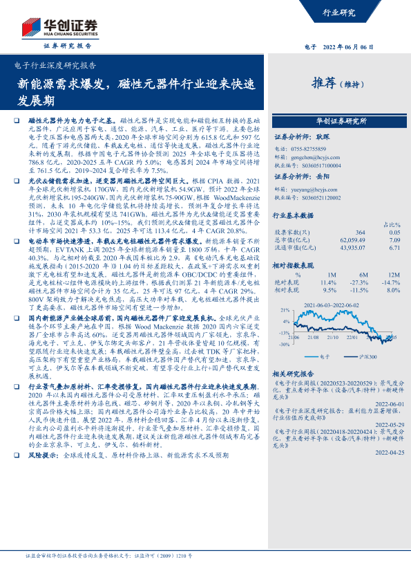 【华创证券】【20220606】电子行业深度研究报告:新能源需求爆发,磁性元器件行业迎来快速发展期-27页