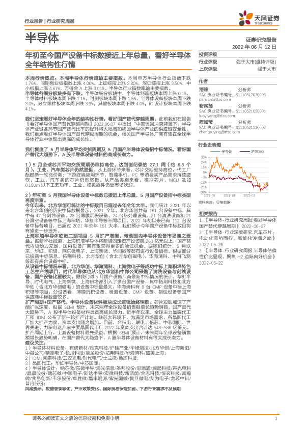 【天风证券】【20220612】20220612-天风证券-半导体行业研究周报:年初至今国产设备中标数接近上年总量,看好半导体全年结构性行情-17页