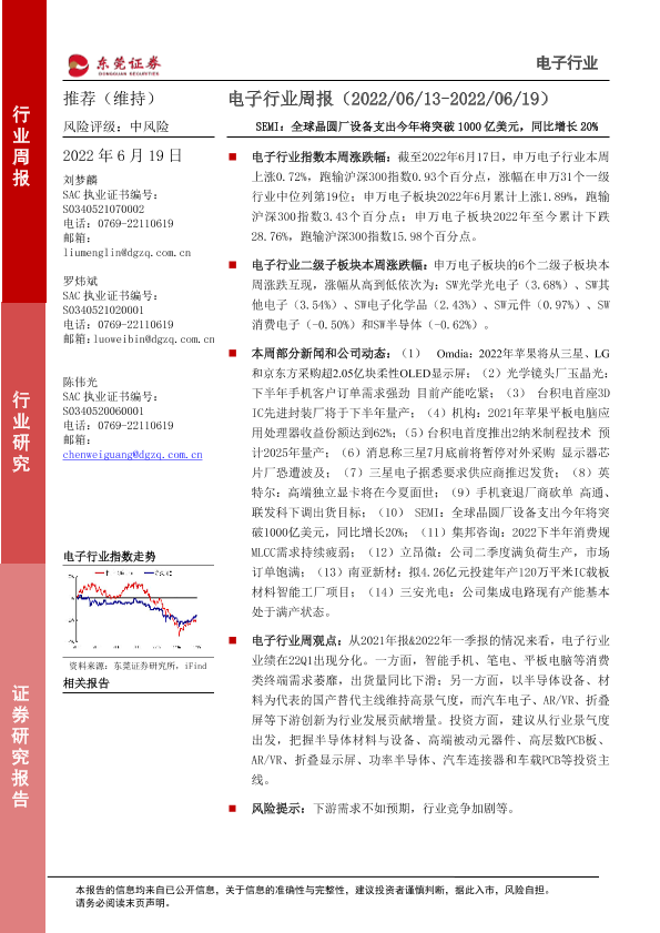 【东莞证券】【20220619】电子行业周报:SEMI:全球晶圆厂设备支出今年将突破1000亿美元,同比增长20%-14页
