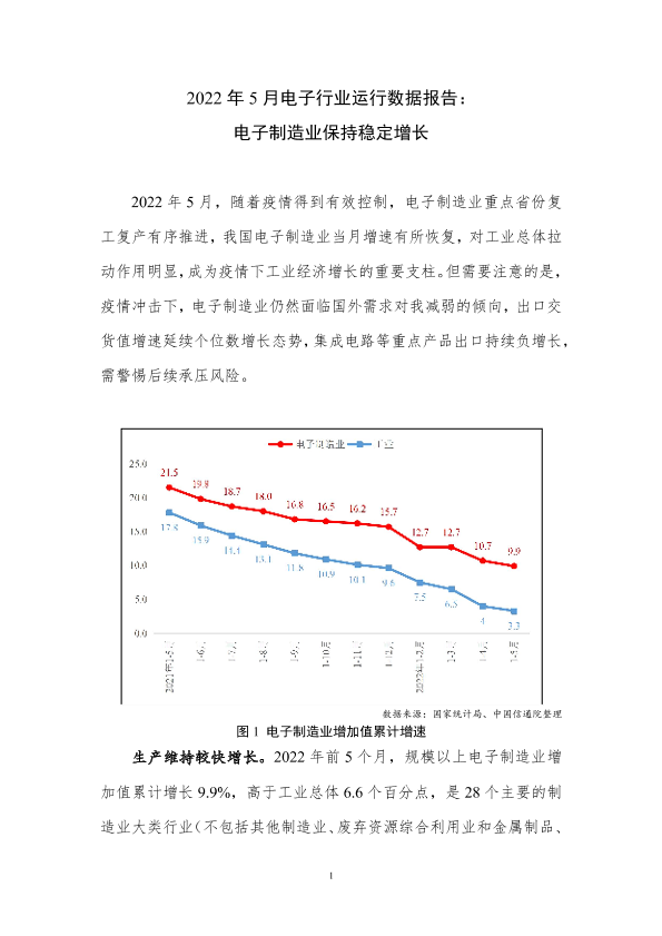 【中国信通院】【20220623】2022年5月电子行业运行数据报告:电子制造业保持稳定增长-5页